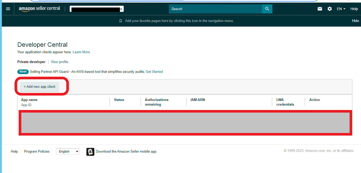 https://sellercentral.amazon.com/sellingpartner/developerconsole/ref=xx_DevCon_dnav_xx