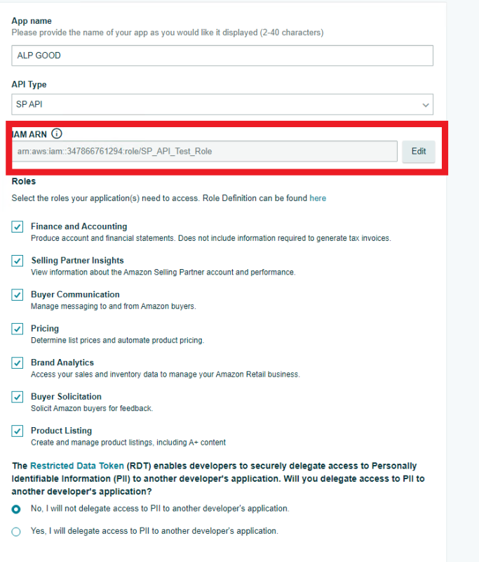 arn:aws:iam::347866761294:role/SP_API_Test_Role